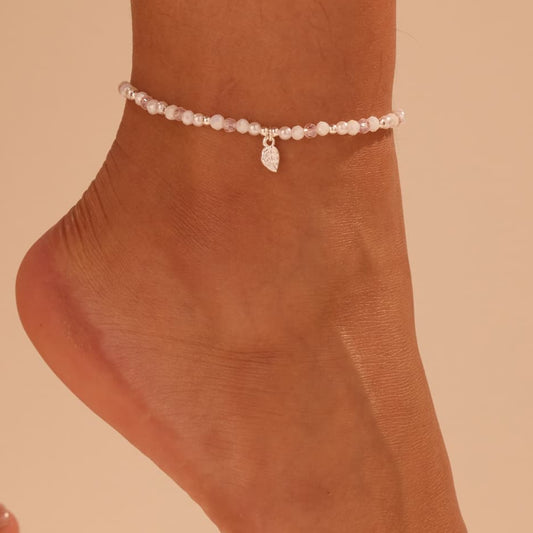 Leaf Charm Pink and White Beaded Anklet