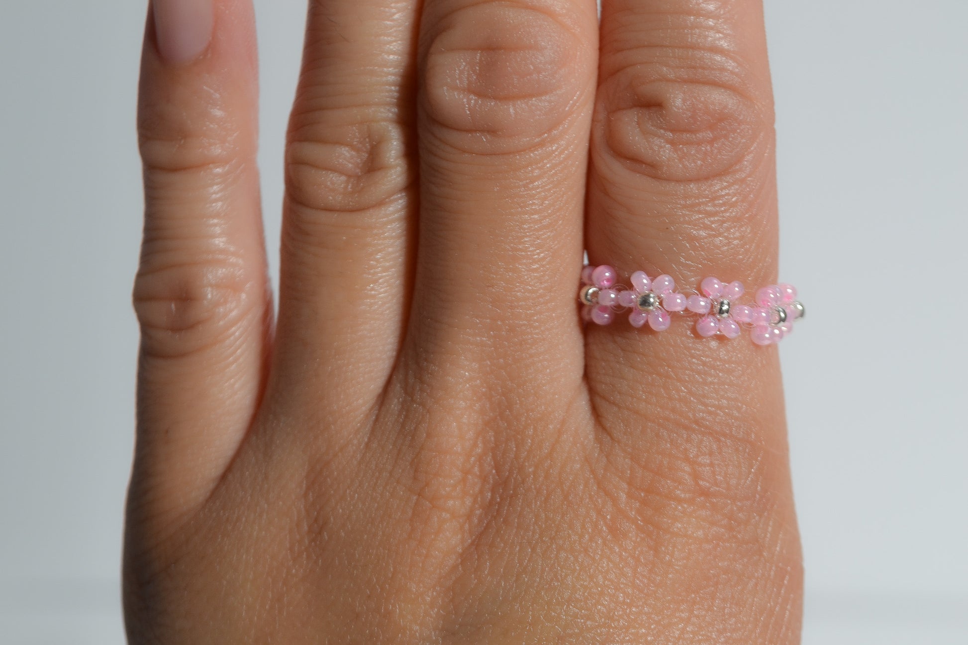 Handmade beaded daisy ring. If you would like it with gold, then please leave a note.