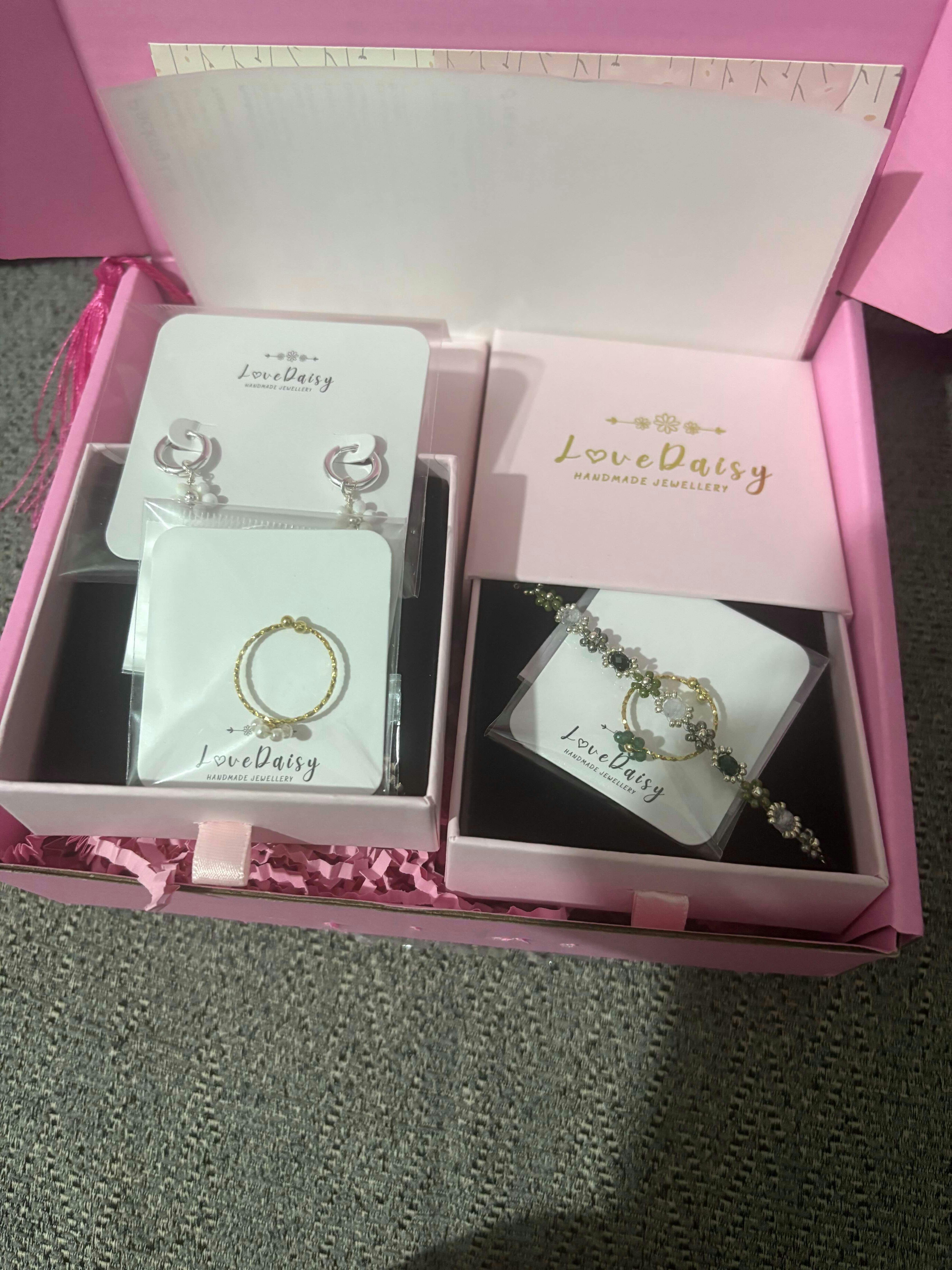 Outstanding quality goes perfectly with pearl daisy and the daisy drop earrings also pair it with a beaded white or cream ring