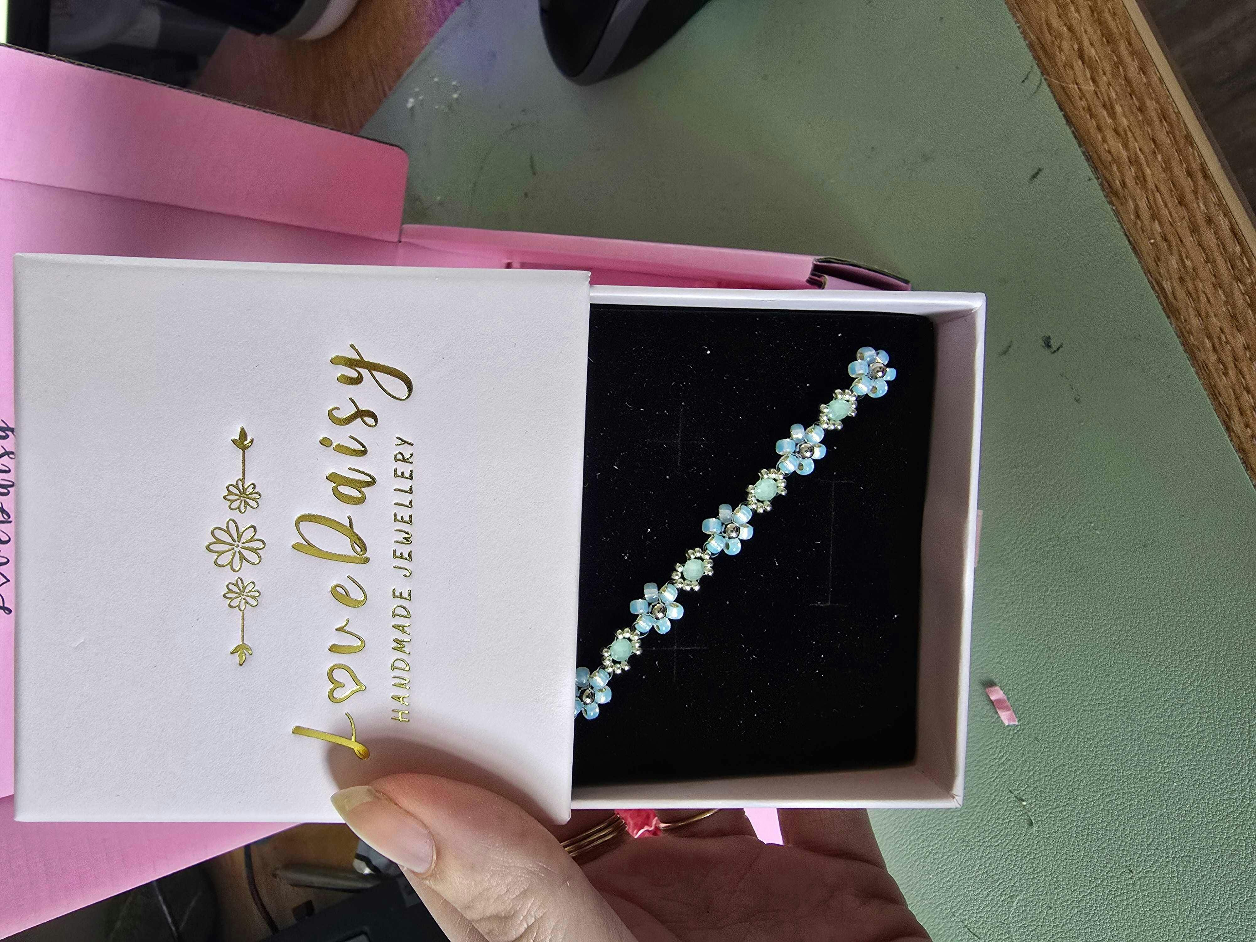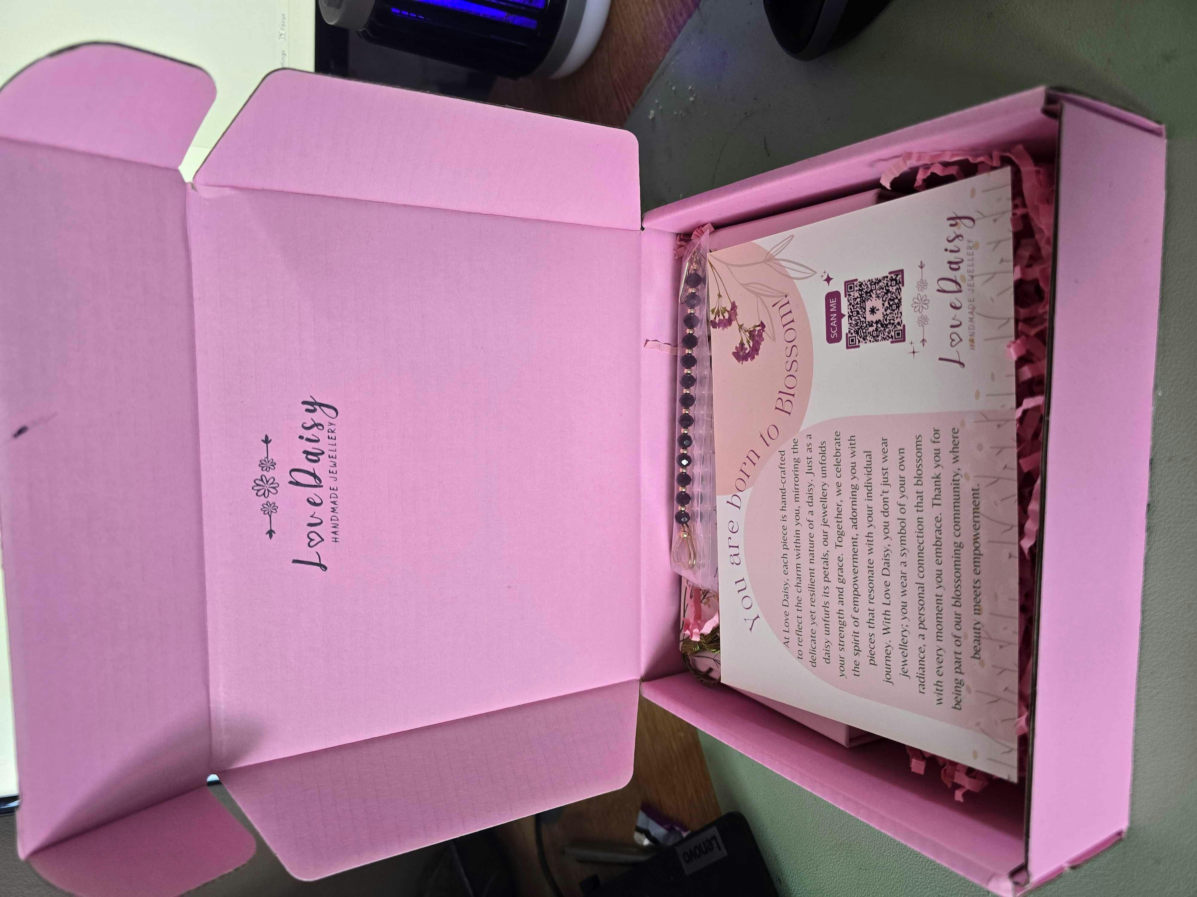 Orders come with a complimentary jewellery pouch and bookmark. Bracelets are packaged in our Pink Drawer Box as seen on the product image.